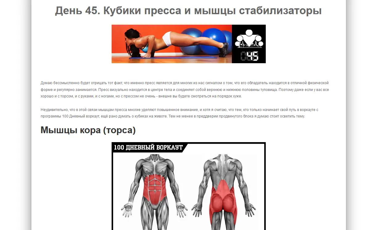 День 45. Кубики пресса и мышцы стабилизаторы