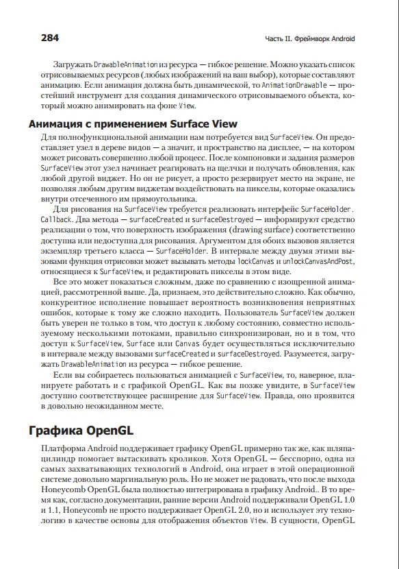 Глава 1. Установка Android SDK и необходимые предпосылки Глава 2. Java для Android Глава 3. Составные части приложения Android Глава 4. Передача программы пользователю Глава 5. Среда Eclipse для разработки программ Android Часть II. Фреймворк Android Глава 6. Создание вида Глава 7. Фрагменты и многоплатформенная поддержка Глава 8. Рисование двухмерной и трехмерной графики Глава 9. Обращение с данными и их долговременное хранение Часть III. Скелет приложения Android Глава 10. Каркас работоспособного приложения Глава 11. Создание пользовательского интерфейса Глава 12. Использование поставщиков содержимого Глава 13. Поставщики содержимого как фасад для веб-сервисов RESTfu Часть IV. Продвинутые темы Глава 14. Поиск Глава 15. Геолокация и картография Глава 16. Мультимедиа Глава 17. Сенсоры, коммуникация ближнего поля, речь, жесты и доступность Глава 18. Коммуникация, личные данные, синхронизация и социальные сети Глава 19. Комплект для нативной разработки в Android (NDK)