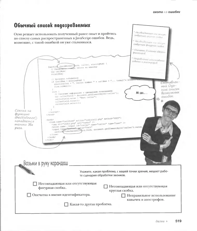 С помощью этой книги вы узнаете все о языке JavaScript: от переменных до циклов. Вы поймете, почему разные браузеры по-разному реагируют на код и как написать универсальный код, поддерживаемый всеми браузерами. Вам станет ясно, почему с кодом JavaScript никогда не придется беспокоиться о перегруженности страниц и ошибках передачи данных. Не пугайтесь, даже если ранее вы не написали ни одной строчки кода, - благодаря уникальному формату подачи материала эта книга с легкостью проведет вас по всему пути обучения: от написания простейшего java-скрипта до создания сложных веб-проектов, которые будут работать во всех современных браузерах.
