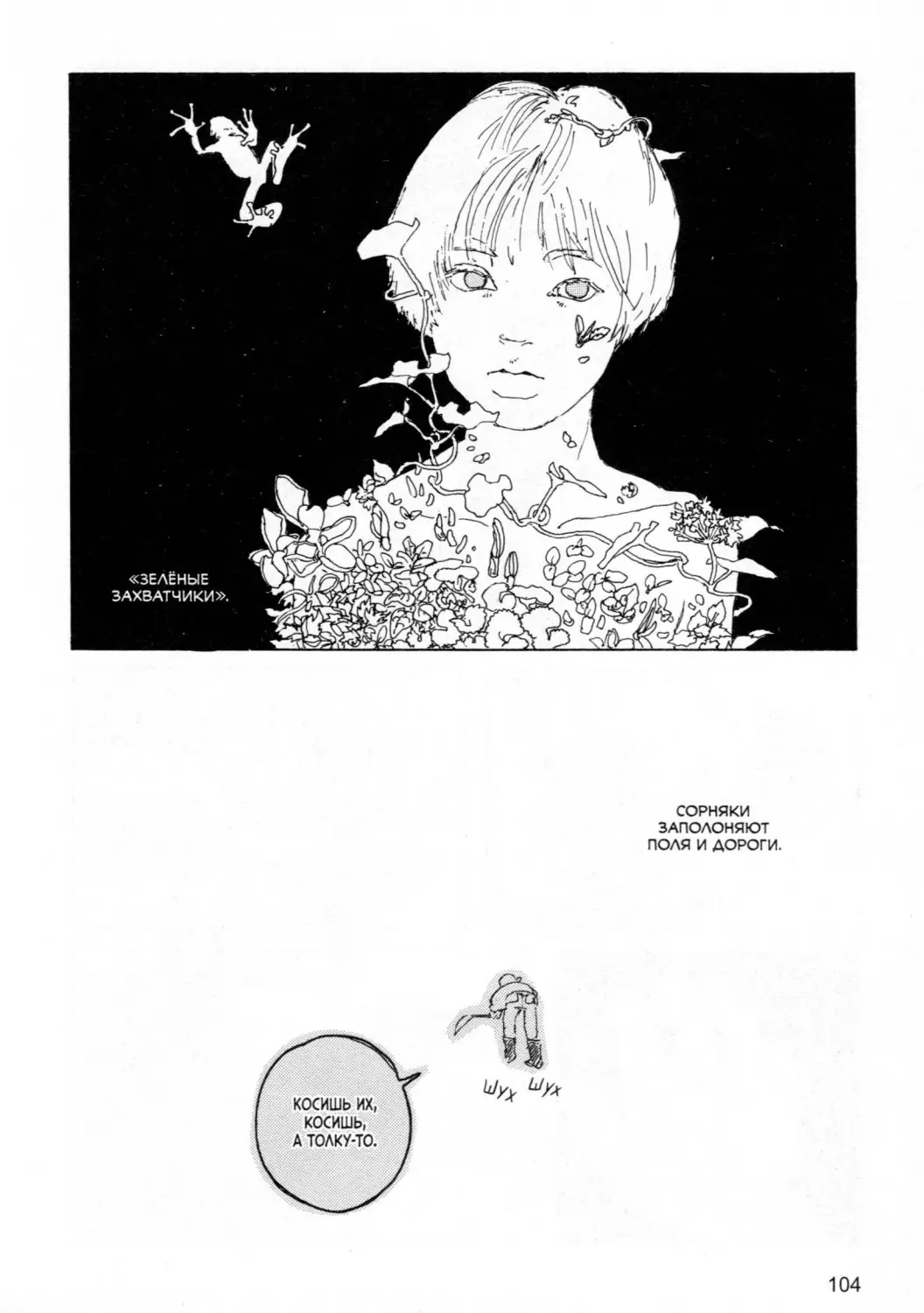 Из собранного урожая девушка готовит самые разные кушанья — как правило, незамысловатые, но всегда такие, что аж слюнки текут. Каждая глава этой манги посвящена одному из них: от выращивания овощей, трав, фруктов и ягод до готового блюда на столе. Приятного аппетита! Примеры страниц:-