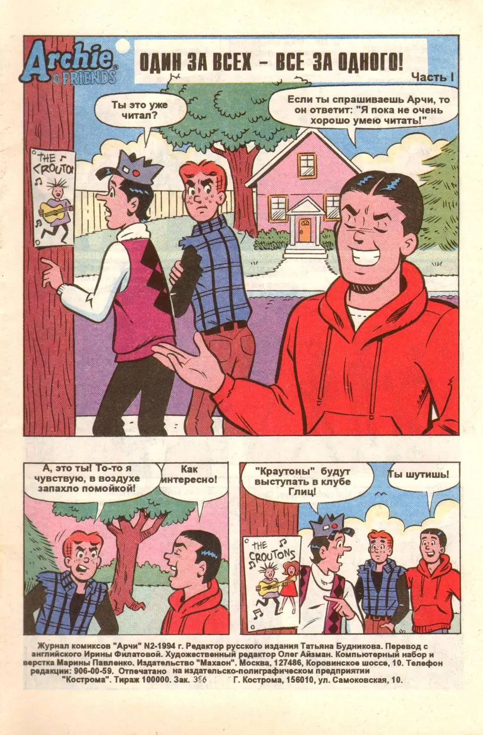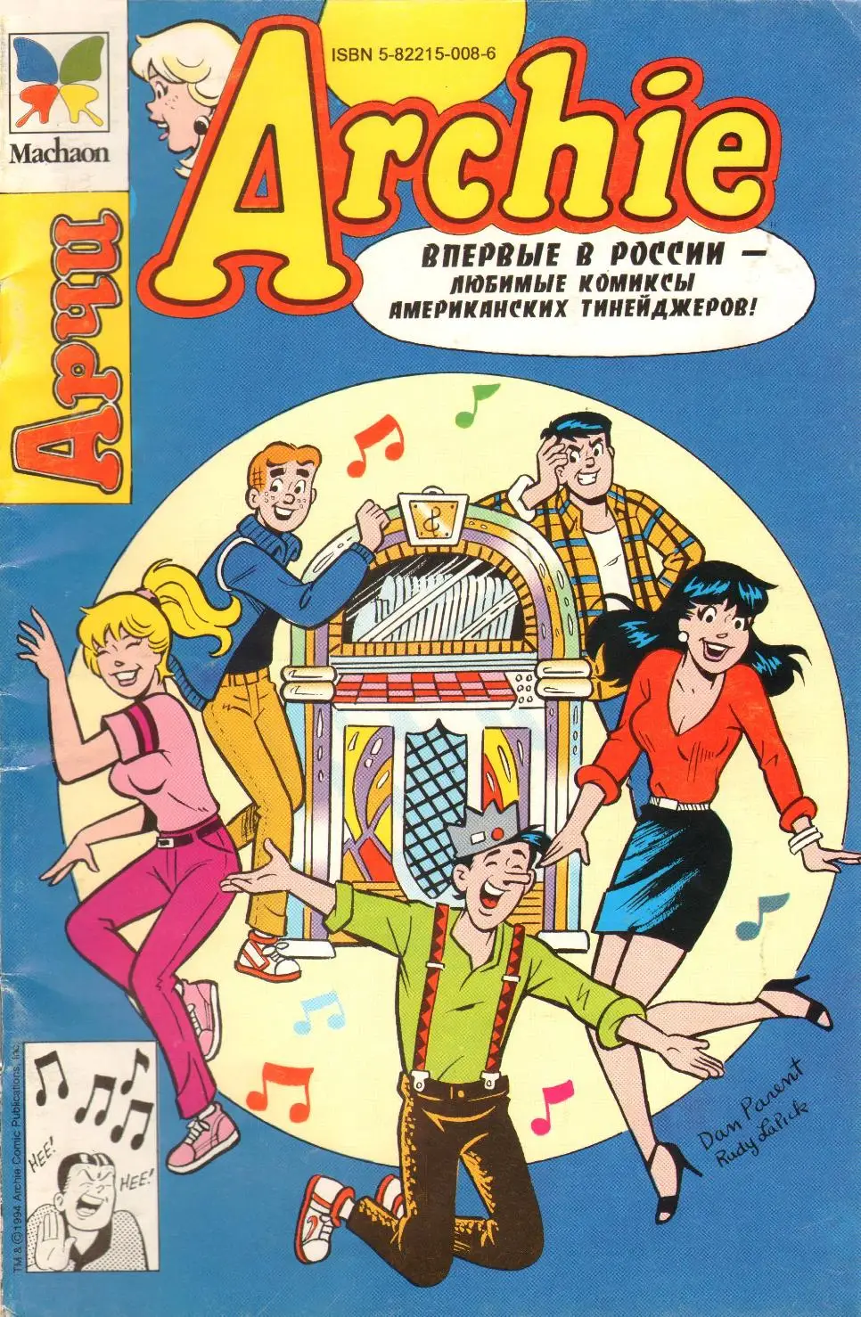Archie Год: 1994, 1995. Все выпуски, вышедшие в России. Автор: Dan Parent, Rudy LaPick Жанр: Комикс Издательство: Махаон Язык: Русский Формат: JPEG Качество: Отсканированные страницы Количество страниц: 32 Описание: Арчи (англ. Archie) — комикс о приключениях неунывающего подростка и его забавных друзьях. Романтические истории и решение обычных человеческих проблем с юмором.