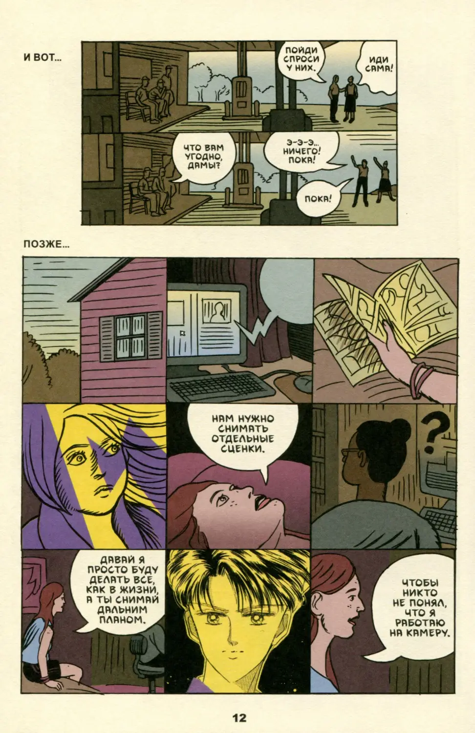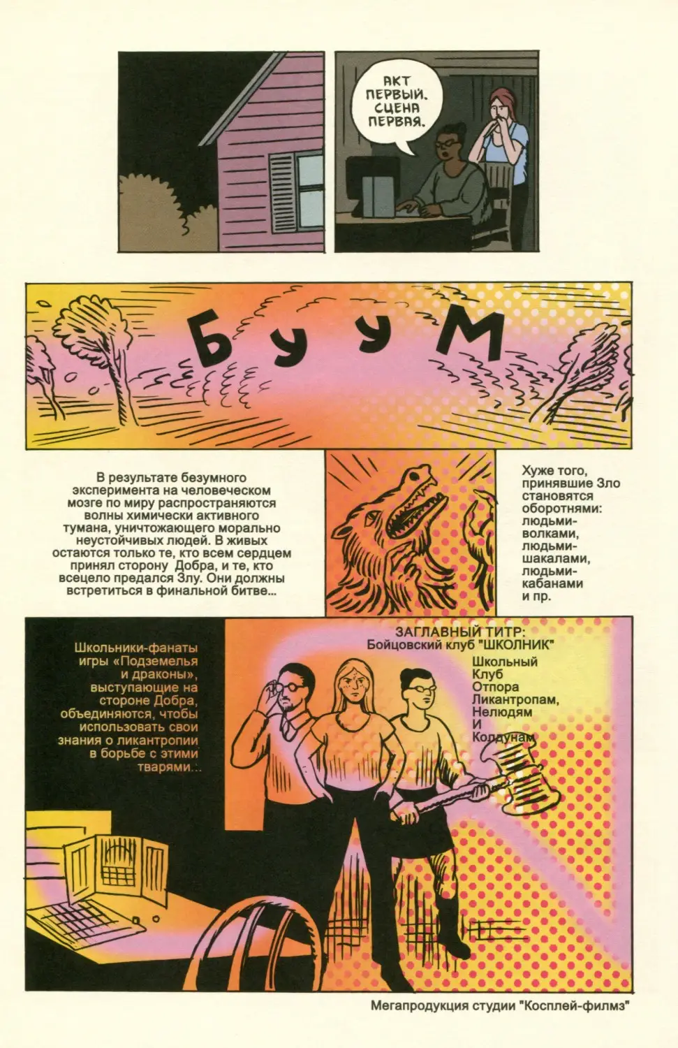 Cosplayers / Косплееры Год издания: 2016 (оригинальное книжное издание) / 2018 (русскоязычное издание) Автор: Dash Shaw / Дэш Шоу Переводчик: Алексей Самойлов Жанр или тематика: повседневность, комедия Издательство: Fantagraphics / Фабрика комиксов Язык: Русский Формат: CBR Качество: Отсканированные страницы Количество страниц: 141 Описание: «Косплееры» – это ода самому живописному ритуалу фэндома, который в том или ином виде представлен на каждой конвенции фанатов комиксов и аниме. Косплей сочетает в себе присущую этим жанрам театральность и красоту сделанных своими руками вещей – даже несмотря на то, что временами фантазия и реальность переплетаются в сознании их творцов самым причудливым образом. На этом ярком, самобытном фоне автор «Косплееров» разворачивает перед нами историю двух талантливых молодых женщин, одинаково сильно влюбленных в косплей и кино. Примеры страниц:-