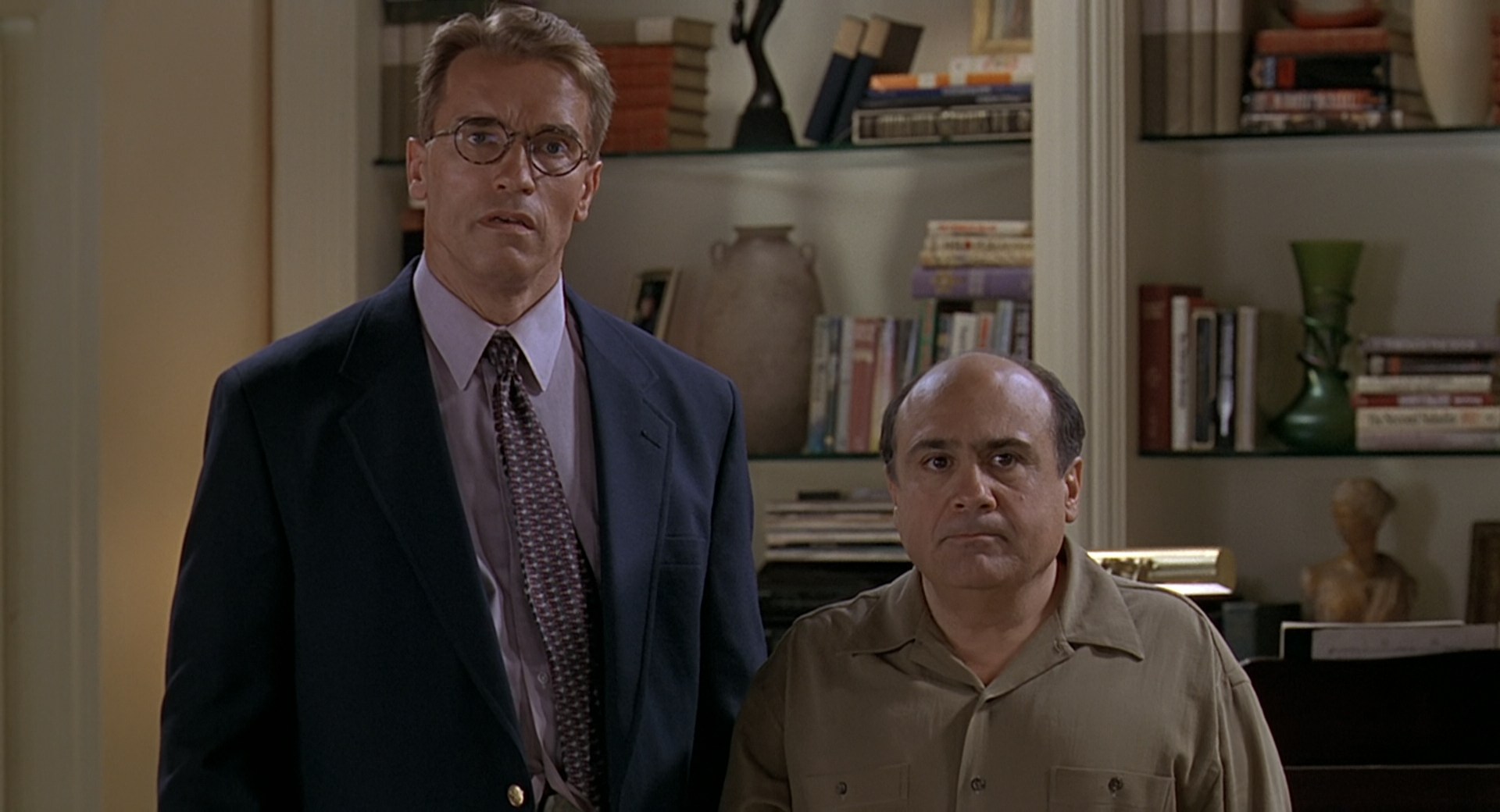 В ролях: Арнольд Шварценеггер, Дэнни ДеВито, Эмма Томпсон, Фрэнк Ланджелла, Памела Рид, Аида Туртурро, Джеймс Экхаус, Меган Кэвэна, Уэлкер Уайт, Кэтлин Чэлфант, Мерл Кеннеди, Джуди Коллинз, Минди Сиджер, Кристофер Мелони, Антуанетт Пераджине О фильме: Ученые-медики Алекс Хесс и Ларри Арбогаст работают над уникальным препаратом, который должен помочь женщинам избежать выкидышей. Когда финансирование исследований прекращается, друзья принимают неординарное решение, чтобы проверить эффективность изобретенного ими средства. Выкрав замороженную женскую яйцеклетку, Арбогаст вводит ее в тело Хесса, который согласился вынашивать младенца…