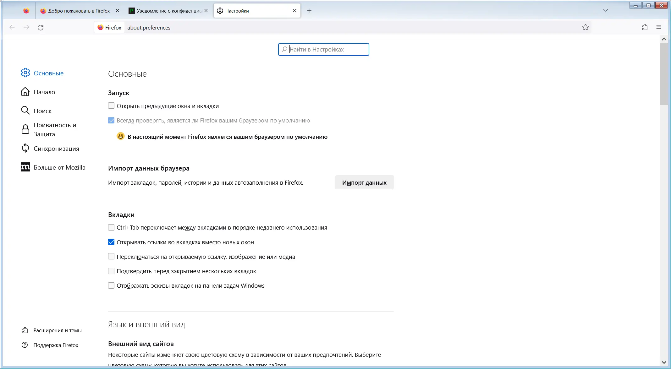 • Поддержка вкладок (несколько страниц в одном окне)