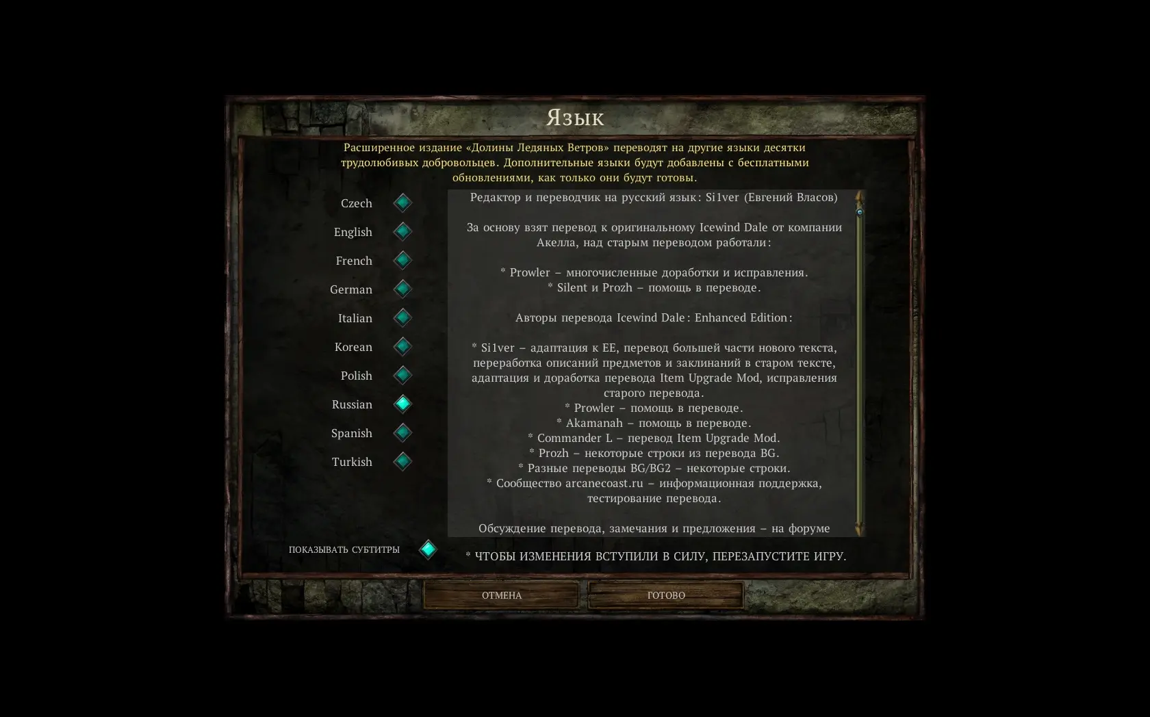 Icewind Dale: Enhanced Edition Год выпуска: 2014 Жанр: RPG / Isometric Разработчик: Beamdog Издатель: Beamdog Платформа: Windows Версия: 2.6.6.0 Тип издания: Неофициальный Релиз: Portable (steam) Язык интерфейса: Русский (EugVV), английский, французский, итальянский, немецкий, испанский, польский, турецкий, корейский, чешский; Язык озвучки: Русский (1С), английский, французский, итальянский, немецкий, испанский, польский; Таблeтка: Не требуется (нет привязки к стиму) Системные требования: