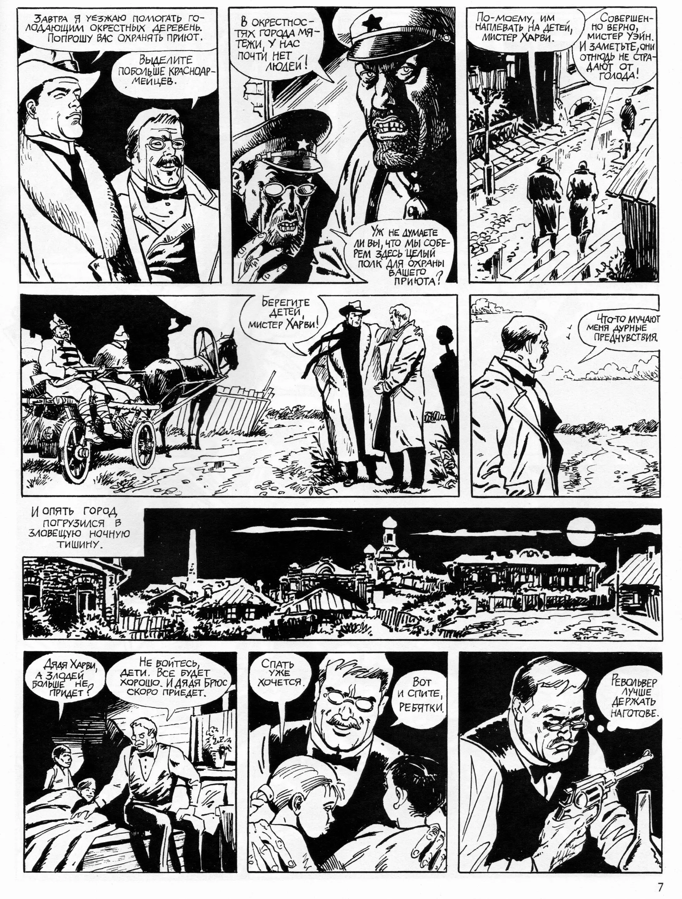Бэтмен в России Год издания: 1992 / 2016 Автор: Игорь Кожевников Издательство: Велес Язык: Русский Формат: CBZ Качество: Отсканированные страницы Количество страниц: 21 Описание: Впервые комикс «Бэтмен в России» был опубликован издательством «Велес» в Екатеринбурге в 1992 году. Эта уникальная история рассказывает о приключениях Брюса Уэйна в 1921 году в охваченном голодом Поволжье советской России. В раздаче скан переиздания 2016 года от "Тиен". Примеры страниц:-
