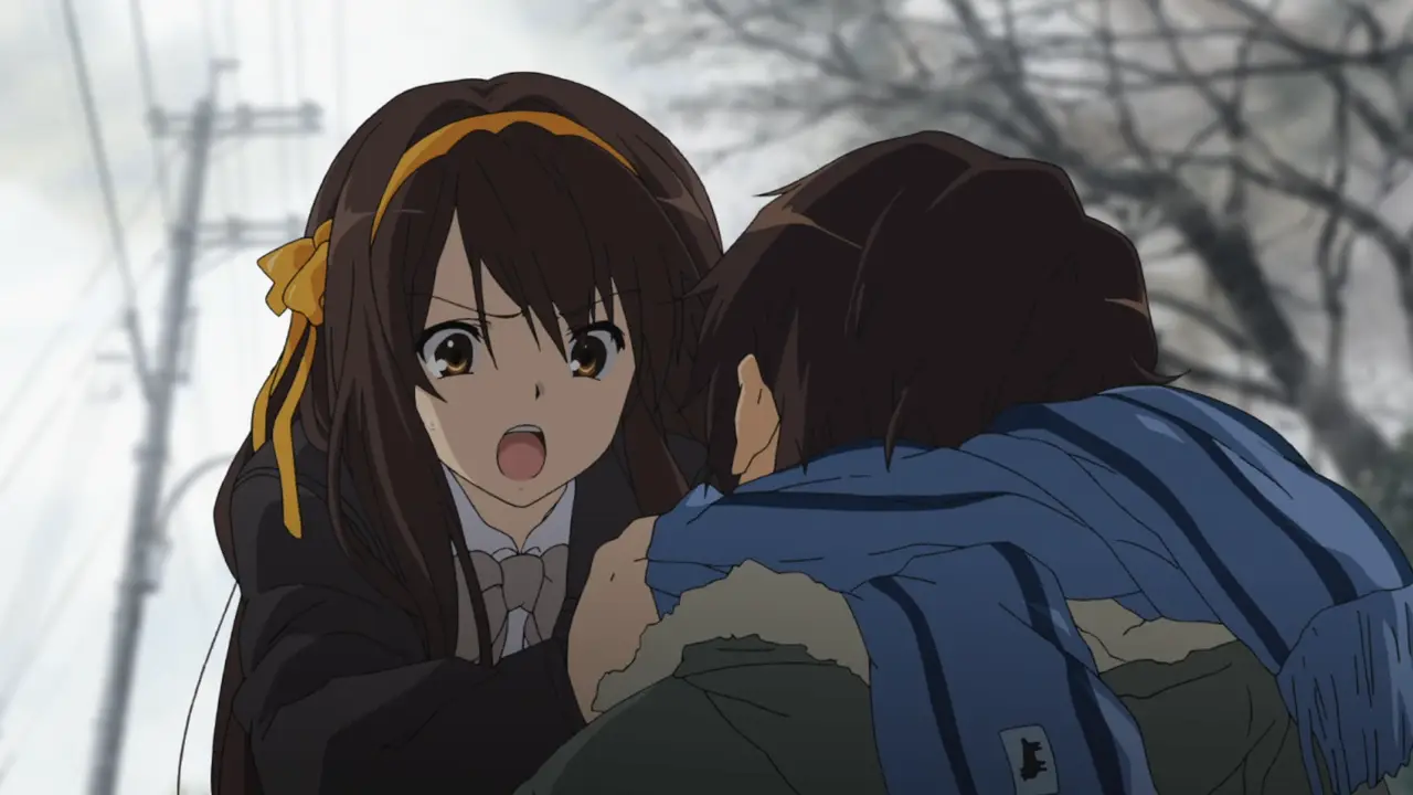 Сюжет повествует о событиях, произошедших с 16 по 24 декабря, то есть спустя месяц после фестиваля культуры. 17 декабря был обычный школьный день. Харухи захотелось организовать вечеринку по поводу приближающегося Рождества. Однако по какой-то причине мир для Кёна на следующий день полностью изменился. После некоторых сомнений он понял, что Харухи больше нет в его школе. Юки теперь не пришелица, Микуру — обычная школьница, а никакого загадочного переведённого ученика и вовсе не было. Единственной зацепкой является тандзаку, небольшой кусочек тонкой цветной бумаги с написанными на нём желаниями, оставленный Юки-пришелицей, где говорится о необходимости собрать «ключи» для запуска некой «программы»…-Качество: BDRip 720p Тип релиза: Без хардсаба Формат видео: MKV Релиз/Автор рипа: CrazyNike94 Совместимость с бытовыми плеерами: Да Видео: x264, 8 bit, 1280x720, ~700 kbps, 23.976 fps Аудио RUS: MP3, 192 kbps, 48 KHz, 2 ch Reanimedia Аудио JAP: MP3, 192 kbps, 48 KHz, 2 ch Субтитры RUS: srt, встроенные только надписи Субтитры RUS: srt, ass, внешние Orange-kun & NotecX Скриншоты:-