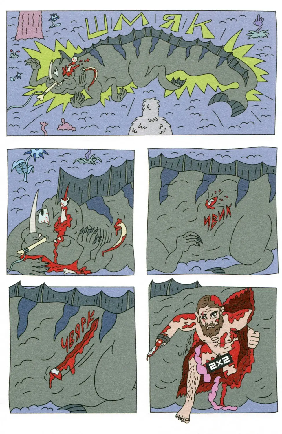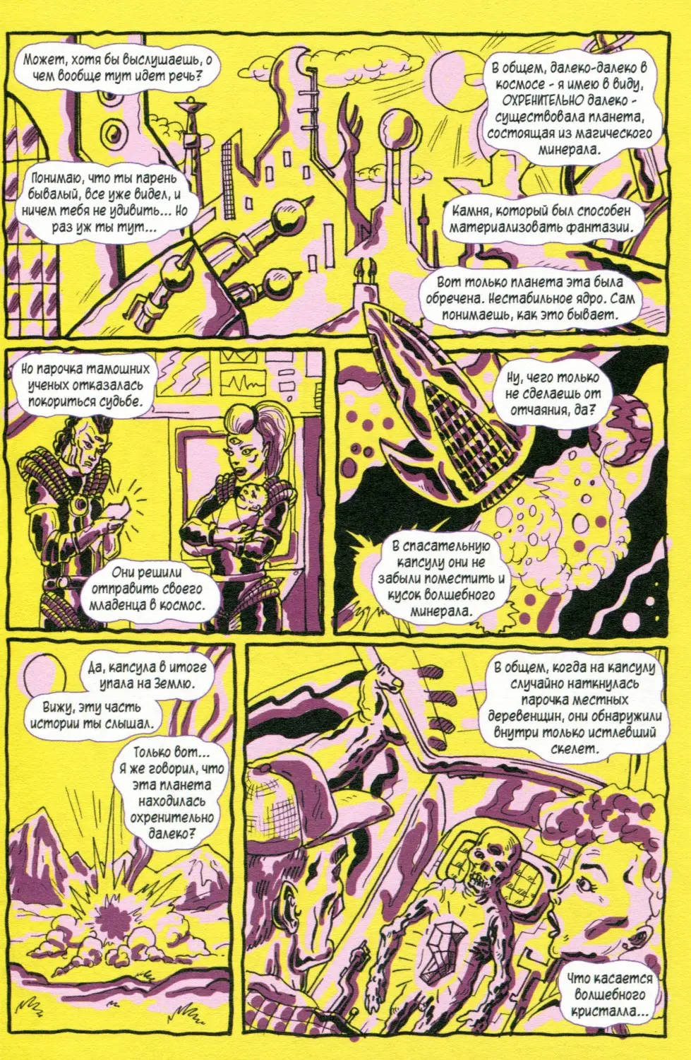 Катя («Собакистан»), Артём Бизяев («Продукты 24»), Джазендапус («Хальмстад»), Андрей Плотник («Синтелла»), Кампостер («Кибердянск»), Гоша Елаев («Тюмэн»), Алексей Хромогин («Первый человек на Земле»), Артём Острецов и North X Carolina («Блэк Майк. Большой переполох»). Обложку нарисовал Алексей Хромогин. Примеры страниц:-