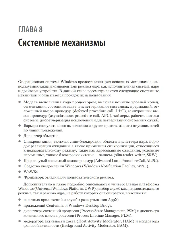 Седьмое издание было полностью переработано под Windows 10/11 и Windows Server (2022, 2019 и 2016). Кроме этого в книгу были добавлены сведения по Hyper-V, полностью переработаны главы о процессе загрузки, новых технологиях хранения данных и механизмах управления Windows. Вы найдете уникальную информацию, основанную на исходном коде Microsoft, и практические эксперименты с применением новейших средств отладки, направленные на демонстрацию особенностей поведения внутренних компонентов Windows.