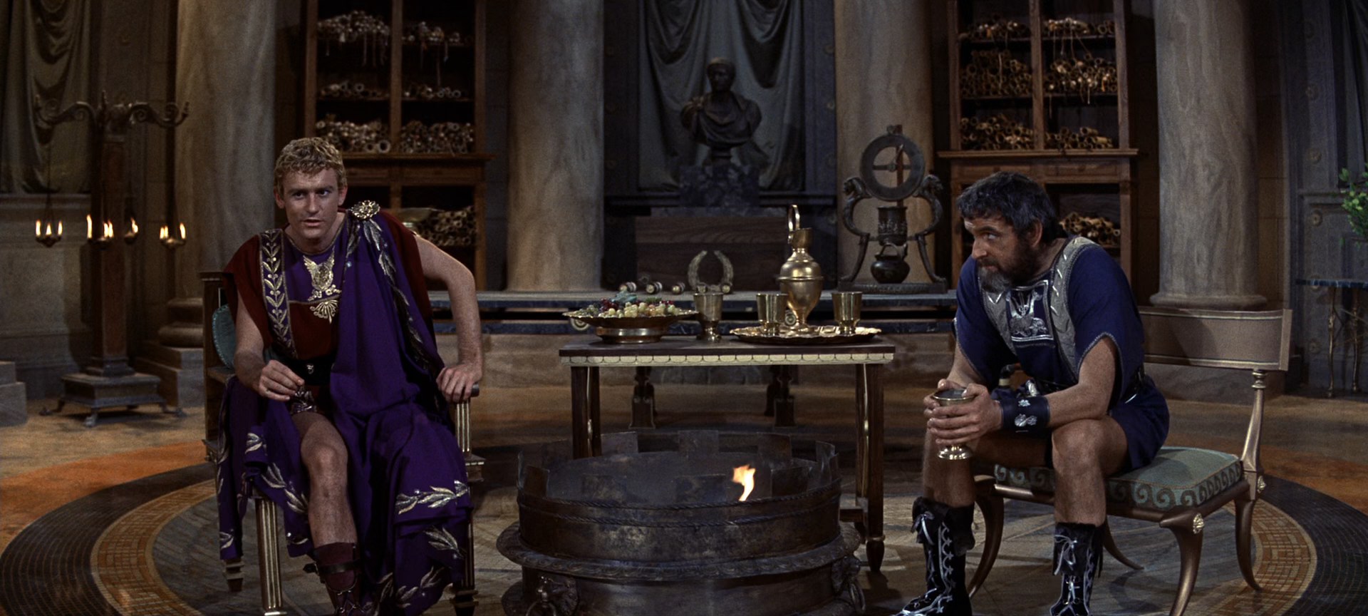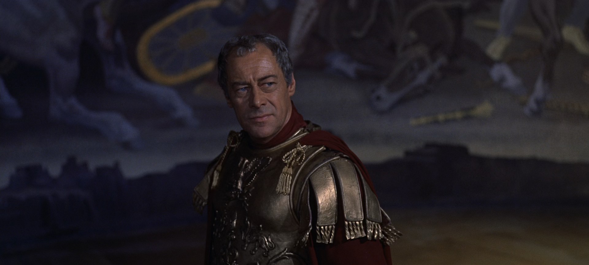 • Отдельные эпизоды битвы при Фарсале были запечатлены в Испании (возле городка Альмерия) и затем под Лондоном в феврале 1963 года. По первоначальному замыслу, сцена логически объединяла двоих главных героев. Цезарь должен был встретиться после битвы с Антонием, но Ричард Бёртон уже был занят в другой картине, и его пришлось заменить на Руфиона (Мартина Ландау). Ключевой момент картины потерял свой посыл. Собственно, и самой битвы в окончательном монтажном варианте нет — из-за спешки ничего внятного снять и смонтировать так и не удалось, хотя только на её постановку было потрачено около $500 тыс. Зритель видит только дым погребального костра над полем закончившегося сражения. С учётом всех поправок Занука окончательная длительность картины для проката составила около 248 минут. Манкевич встретил это решение с глубоким разочарованием, посчитав, что длительность картины должна была быть около 6 часов и многие из его идей оказались потеряны. Хьюм Кронин и Родди МакДауэлл также остались при мнении, что в монтаже были вырезаны их лучшие сцены.