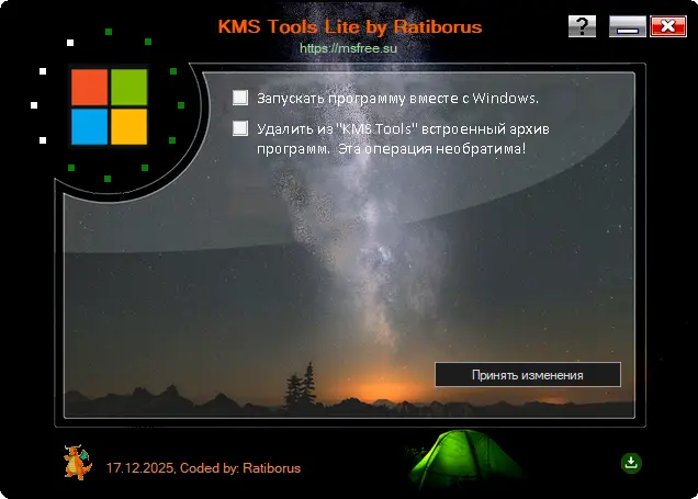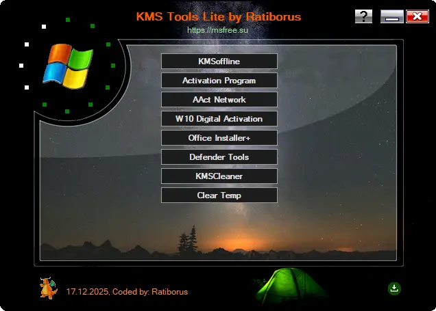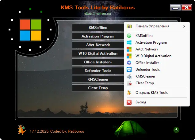 KMS Tools Lite Portable by Ratiborus 17.12.2025 Версия программы: 17.12.2025 Язык интерфейса: Русский, Английский и другие Лечение: не требуется Системные требования: