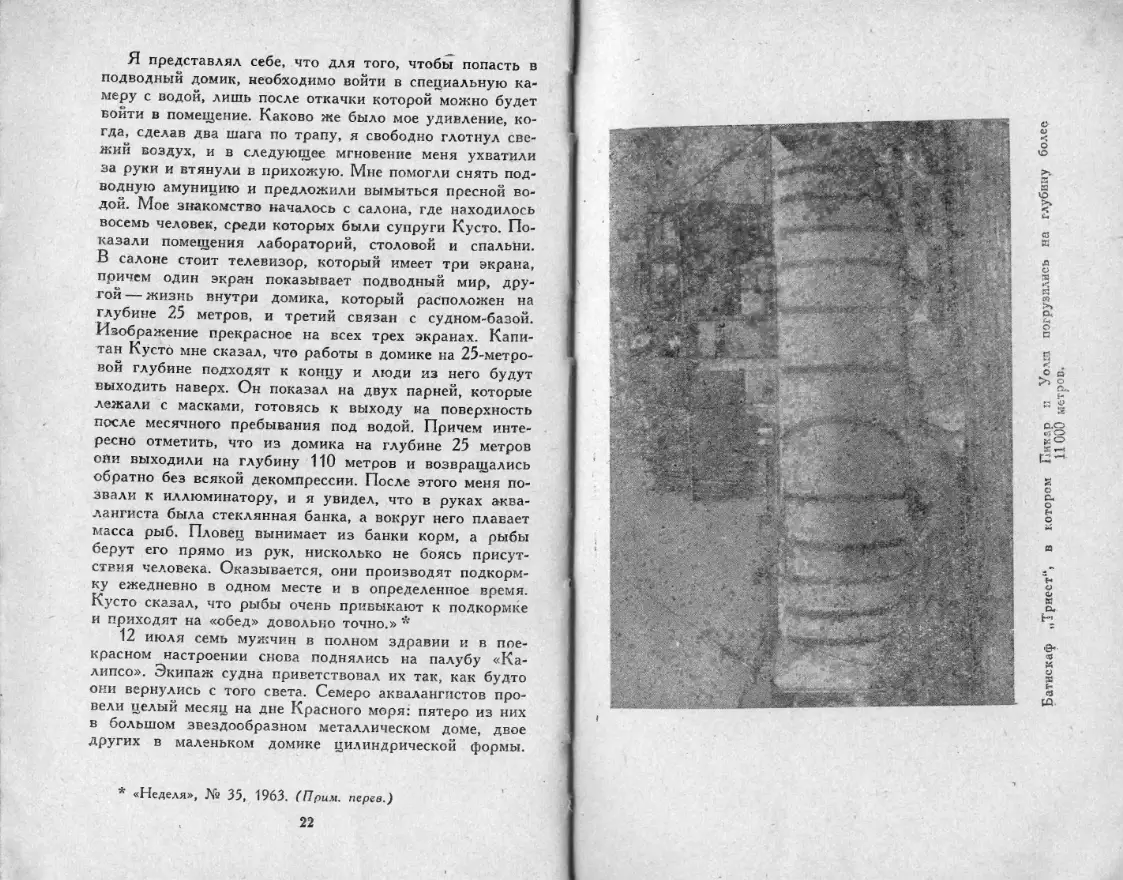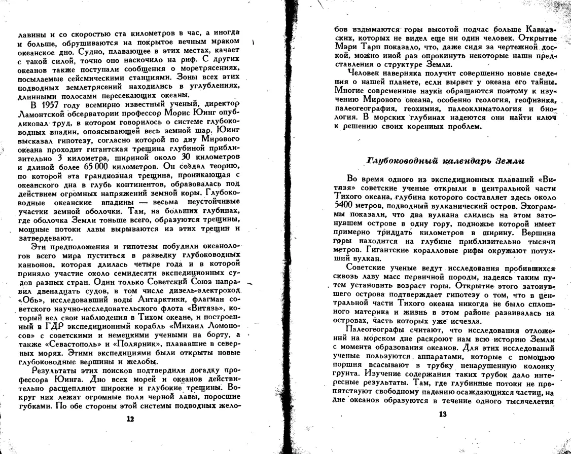 Из глубины веков и вод Год издания: 1969 Автор: Линде Г., Бретшнейдер Э. Издательство: Гидрометиоиздат Язык: Русский Формат: FB2/EPUB/DjVu Качество: Издательский макет или текст (eBook) + Отсканированные страницы Интерактивное оглавление: Да Количество страниц: 230 Описание: Водолаз поднимается на поверхность. В руке он держит старинный меч. Этот меч принадлежал некогда командиру фрегата, разбившегося о скалы и затонувшего в океане много веков тому назад… Сотни тысяч подобных реликвий хранит на своем дне Мировой океан. Все больше пополняются музеи находками водолазов. Но в наши дни эти находки уже не только счастливая случайность, удача отдельных любителей. Бурное развитие океанографии и водолазной техники вызвало к жизни новую отрасль науки: подводную археологию. Ученые и спортсмены-аквалангисты ведут систематическую работу по исследованию водных глубин, и постепенно все яснее вырисовывается перед нами картина жизни людей и целых народов ушедших веков, их быт, культура, экономика. Авторы в яркой и интересной форме дают исторический очерк подводных исследований со времен гибели кораблей самых древних мореходов до трагедии американской подводной лодки «Трешер». Большое внимание уделяют Линде и Бреттшнейдер исследованиям советских археологов. Они используют новейшие данные подводной археологии и океанографии. Книга представляет несомненный познавательный интерес, написана живо и увлекательно и рассчитана на широкий круг читателей.