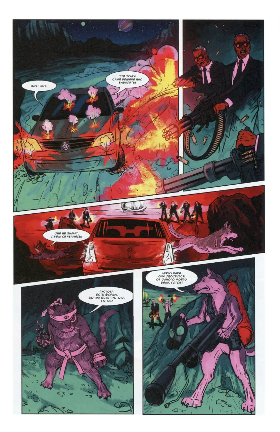 Хорошие ребята Год издания: 2023 Автор: Саша Панцирь, Сергей Антипин, Ежи Втумане Жанр или тематика: комедия, боевик, фантастика Издательство: Alpaca Язык: Русский Формат: CBR Качество: Отсканированные страницы Количество страниц: 39 Описание: Днём — они обычные домашние животные, но стоит их хозяину отправиться спать, как они прыгают в свой старенький Рено Логан и летят спасать четвероногих бедняг со всей галактики! Братья наши меньшие мучаются на рудниках других планет, с ними ужасно обращаются и держат в рабстве. Но наши герои полны решимости покончить с этим! Они освободят своих братков и сестричек из космического плена и пристроят их в любящие семьи. Почему они это делают? Да потому что они — ХОРОШИЕ РЕБЯТА! Примеры страниц:-