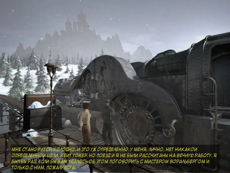 ☛ Свободное место на жёстком диске: 1.3 GB-Описание: Объехав всю Восточную и Западную Европу в поисках пропавшего наследника, Кейт Уолкер наконец завершила своё долгое и тяжелое путешествие, когда ей удалось получить подпись Ганса Форальберга и предотвратить банкротство фабрики. Финал истории? Возможно, но не для Кейт. Необычная пара – молодая Кейт Уолкер и эксцентричный старик Ганс Форальберг – отправляется в самое сердце давно забытого мира в надежде найти последнего из легендарных сибирских мамонтов. Необычные поиски, которые Ганс начал в одиночку ещё несколько лет назад, подойдут к концу, когда он и Кейт столкнутся с самыми опасными в их жизни препятствиями и испытают своё мужество и решимость. Где-то очень далеко загадочный остров Сибирия ждёт их прибытия...-Особенности игры: ✔ Оригинальное видение знаменитого художника комиксов и создателя компьютерных игр Бенуа Сокаля. ✔ Продолжение многогранной истории, которое не оставит вас равнодушными. ✔ Восхитительные локации со множеством современных художественных приёмов и элементами стимпанка. ✔ Самобытный саундтрек, отлично дополняющий игровую атмосферу.