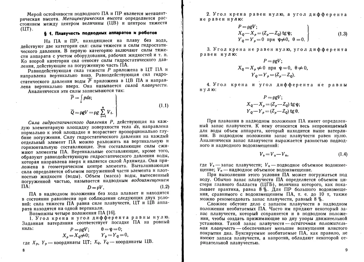 Глава 1. Статика подводных аппаратов и роботов