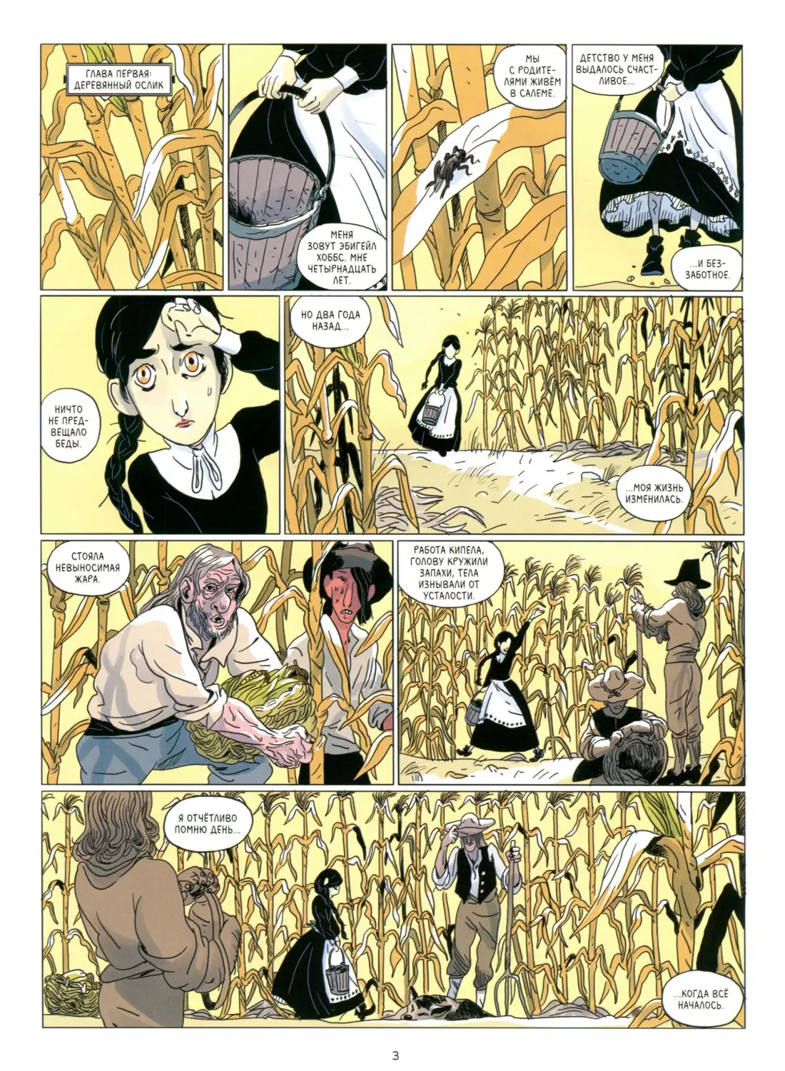 Les filles de Salem / Дочери Салема Год издания: 2018 (оригинал) / 2024 (русскоязычное издание) Автор: Thomas Gilbert / Тома Жильбер Переводчик: Сона Мкртчян Жанр или тематика: исторический, мистика, драма Издательство: Dargaud / Комильфо Язык: Русский Формат: CBR Качество: Отсканированные страницы Количество страниц: 200 Описание: «Меня зовут Эбигейл Хоббс. Мне четырнадцать лет. Мы с родителями живём в Салеме. Детство у меня выдалось счастливое и беззаботное. Ничто не предвещало беды. Но два года назад моя жизнь изменилась. Я отчётливо помню день, когда всё началось».