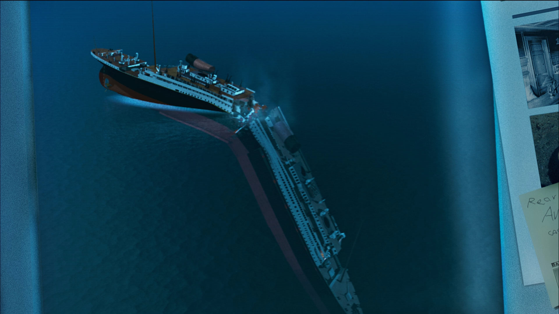 Когда один из управляющих кораблём произносит «Полный вперёд!», кто-то подхватывает «Полный вперёд!» на заднем плане. Это голос режиссёра Джеймса Кэмерона.