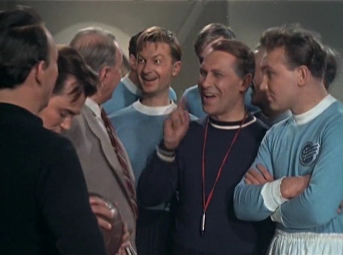 -Советский и российский актёр театра и кино. Народный артист СССР.-Родился: 5 апреля 1917 г., Зеленогорск, Выборгская губерния, Великое княжество Финляндское, Российская империя-Умер: 22 октября 2001 г. (84 года), Москва, Россия Рост: 174 см В браке с: Тамара Фёдоровна Вицина (с 1949 г.) Дети: Наталья Георгиевна Вицина--Год выпуска: 1954 Страна: Жанр: Комедия Продолжительность: 01:18:07 Режиссер: Семен Тимошенко В ролях: Георгий Вицин, Всеволод Кузнецов, Елена Тяпкина, Павел Кадочников, Татьяна Конюхова, Валентина Ушакова, Марк Бернес, Константин Адашевский, Владимир Белокуров, Павел Поль, Александр Жуков (II), Эльвира (Эльва) Луценко... Описание: Заводская команда "Синих Стрел" выходит в финал и отправляется в Сухуми на теплоходе для встречи с "Вымпелом", считающимся фаворитом. Подающий надежды запасной игрок Вася Веснушкин влюблен в гимнастку, опасаясь, что та предпочитает зазнавшегося старшего брата, лучшего игрока той же команды. На борту находится также актер кино Светланов, переодетый стариком Дедушкиным для лучшего проникновения в образ будущей роли. Сотрудники института геронтологии принимают старика за профессора из Москвы Бабушкина... Качество: DVDRip Формат: AVI Видео кодек: XivD Аудио кодек: АС3 Видео: 688x512, 25 fps, 1778 kbps Аудио: 48 kHz, 6 ch, 448 kbps